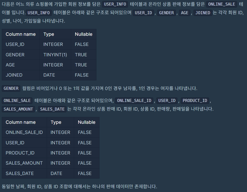 년, 월, 성별 별 상품 구매 회원 수 구하기(Lv4)
