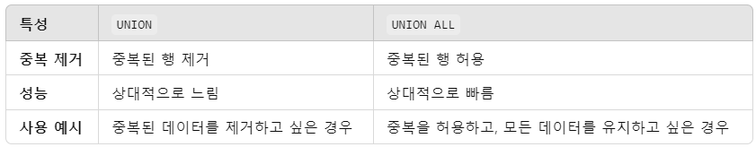UNION은 중복 제거, UNION ALL은 중복 허용!