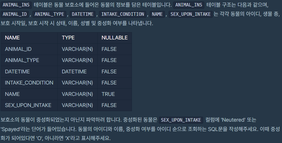 SELECT에서 동물의 아이디, 이름을 조회