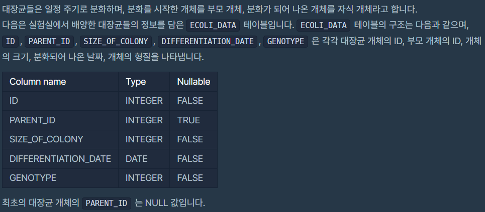 - 즉, 동일한 레코드의 ID 값과 PARENT_ID 값이 같아야 하는 경우를 찾는다는 의미가 됩니다.