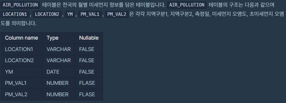 PM10, PM2.5 각각 PM_VAL1, PM_VAL2의 평균을 소수 셋째 자리에서 반올림한 값들임