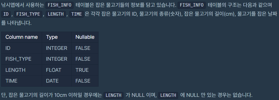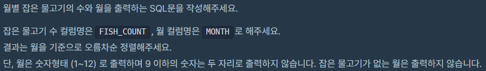SELECT에서 FISH_COUNT, MONTH를 조회