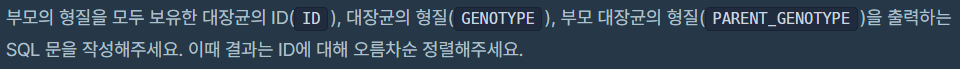 SELECT로 ID, GENOTYPE, PARENT_GENOTYPE를 조회