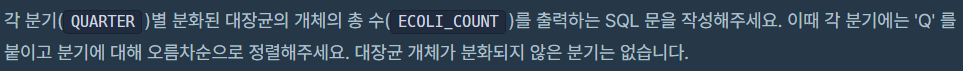 SELECT에서 CASE WHEN으로 분기를 나누고 QUARTER라고 지칭, ECOLI_COUNT를 조회